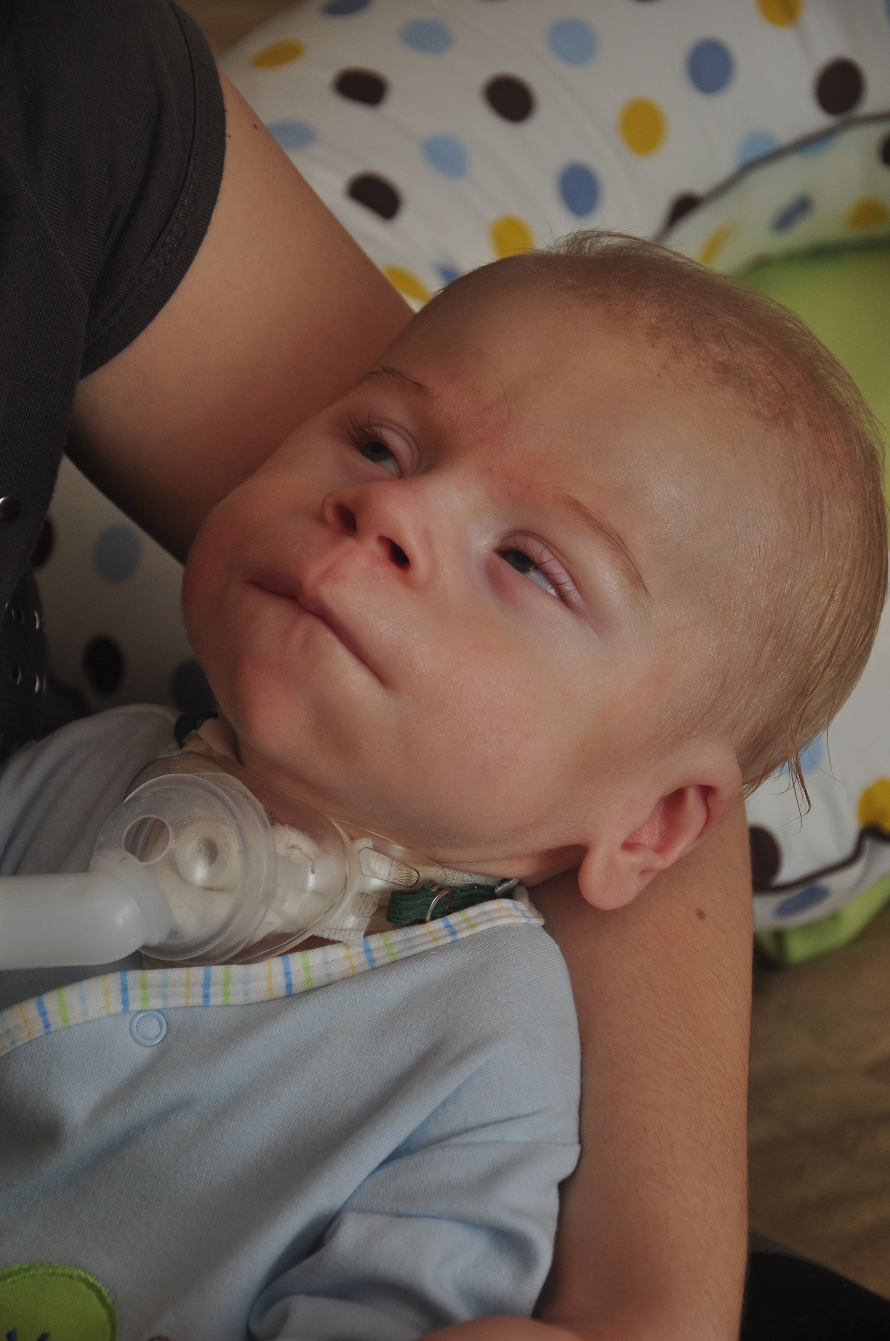 – zasypianie w objęciach… – na nic medycyna, oddechowe wspomagania i wyciszające leki… Zawsze nasz Krzysiulek wyczuwał, kiedy Rodzice idą spać i urządzając sobie grymaśną pobudkę około północy pragnął… wzięcia na rączki, położenia się obok w „rodzicowej” pościeli, przytulenia i szeptania do maleńkiego uszka „kołysanki o Okruszku”… Wtedy dopiero dzieciątko mogło czuć się bezpiecznie, szczęśliwie i zasnąć spokojnie… do rana.