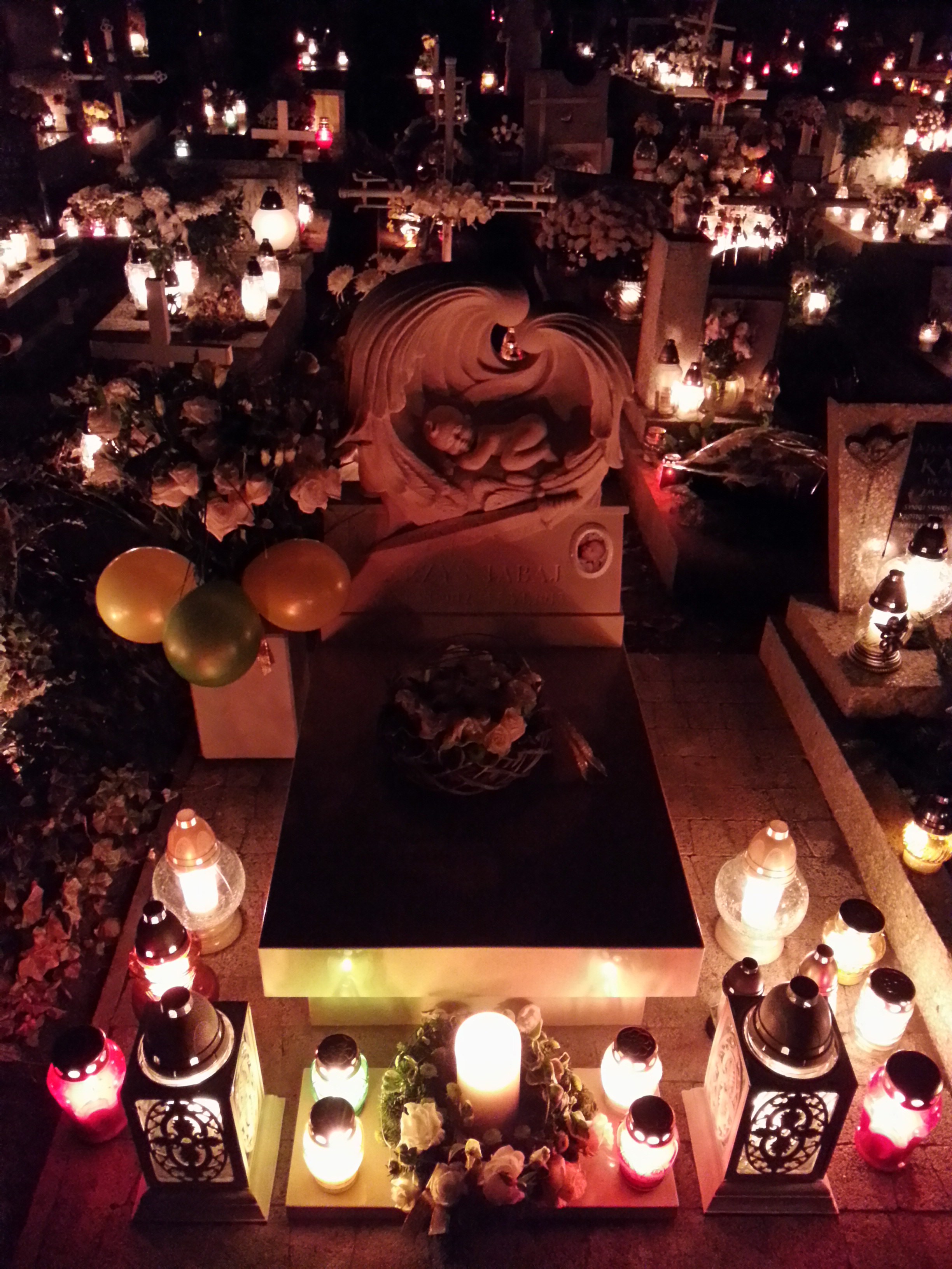 Już za nami… świętowanie w Niebie. Nie wiedzieć czemu, ale wczoraj mieliśmy dziwne, wręcz optymistycznie nas prześladujące przeczucie, że tam na Górze dzieje się coś dobrego, radosnego… Czy nasze światełka zniczy pełnią rolę miliona lampionów na pewnym, niepojętym przez nas balu…? Czy sypał się złoty kurz? Czy nie bez powodu, bez naszej wiedzy, ale za pełną aprobatą, na Krzysiowych kwiatach zawisły kolorowe baloniki? Czy nasze Aniołki Dzieciaczki przybrały wczoraj najpiękniejsze stroje galowe, czy może Ktoś zezwolił im na sporą dozę fantazji fundując wielką garderobę i zezwalając na dziecięcy Bal Przebierańców? 🙂 Nie wiemy, nie mamy pojęcia co się Tam wczoraj działo, ale jakoś tak ciepło nam się robiło na serduchu… Może Krzyś się mocno wtulał swoim skrzydłem szepcąc niesłyszalnie: „Jestem naplawdę scęśliwy!”.