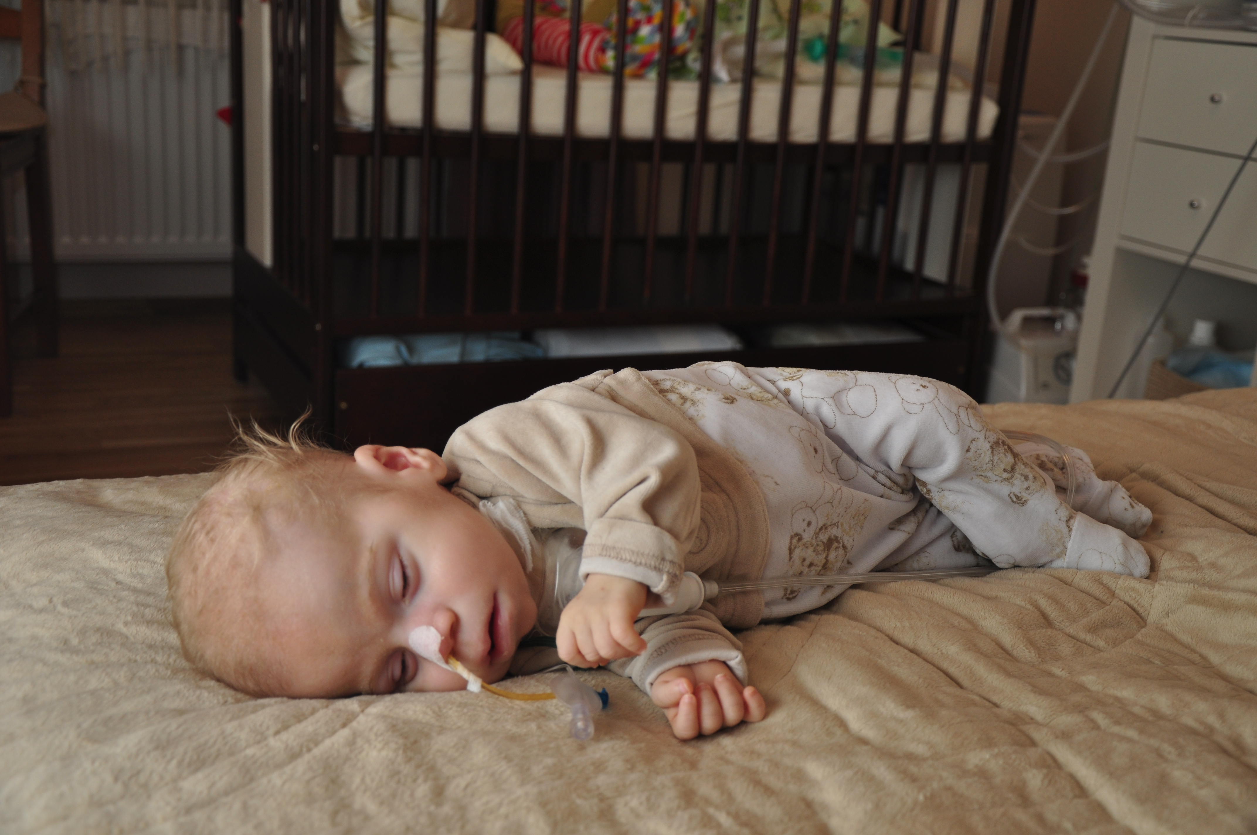 Dzięki tej wierze, nadziei i bezgranicznej miłości do Krzysia nasz synek godnie żył i to w dosłownym tego słowa znaczeniu. Mimo całej aparatury, która go pchała do przodu w tym utrudnionym życiu i mnóstwa niecodziennych czynności pielęgnacyjnych, traktowaliśmy Krzysia zupełnie normalnie, jak zdrowe dziecko, jak gdyby nigdy nic… No, może poza momentami, gdy złapał pierwsze oddechy bez tlenu… Gdy zaczął samodzielnie, słodko, nieporadnie pić z kubeczka buzią… Gdy zwalczył n-tą niepotrzebną, a niebezpieczną infekcję… Wtedy pojawiała się u nas tak przeogromna i nieopisana radość, jakby co najmniej nasz syn zdobywał nagrodę Nobla, jakby zdobywał Mount Everest… Rozpierała nas wielka duma i prawdziwe szczęście. Pragnęliśmy tylko, by był… Nic więcej. A my razem z nim. Najlepiej w domku. I teraz czujemy się także dumni, świadomi spełnienia „godnego życia” naszego Krzysiątka: żył w pełni tak mocno jak tylko potrafił. Nigdy, nawet do ostatnich momentów, gdy było naprawdę źle, nie można powiedzieć o naszym syneczku, że był – znienawidzonym przez nas określeniem – „roślinką”… Krzyś do końca wymagał więcej, niż zaspokojenia potrzeb, aby nie był głodny, aby nie było mu zimno… Krzyś do końca, choć troszkę słabiej, machał rączkami jak czegoś chciał… Reagował ukojeniem na głos, pieszczotę dłoni… Nawet, gdy spał, na nasze przywitanie otwierał oczka, poruszał główką… Gdy coś bolało, płakał… Gdy był mocno przytulany, choć bez wyraźnego uśmiechu, cieszył się… po swojemu.