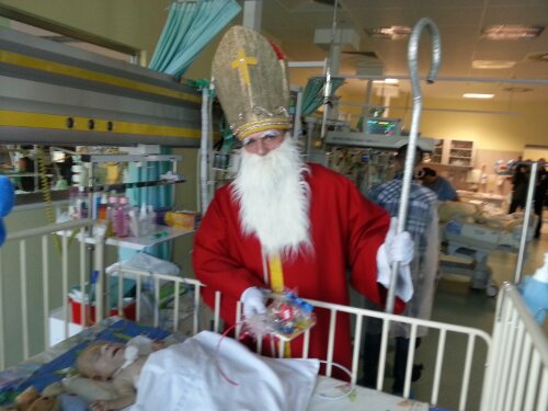 Moje 5- te rodzinki… tiak tiak, Rodzice odśpiewują mi 100 lat co miesiąc i dostaję mały prezencik 🙂 Od Przyjaciół Lekarzy też dostałem prezent, dość nietypowy: nową rurkę tracheotomijną.  Dziś była jej kolejna wymiana i Rodzice się temu przyglądali, żeby sami umieli na kiedyś. Ponoć jest to traumatyczne i stresujące przeżycie dla Pacjenta: Rodzice się trochę bali, a ja… słodko ziewałem… Już coraz więcej Rodzice przy mnie majstrują: całkowicie samodzielnie kąpią, odśluzowują, zmieniają opatrunki przy tracheo, wymienili sondę… A wszystko to, bo trzeba nam się wreszcie szykować do domku 🙂
